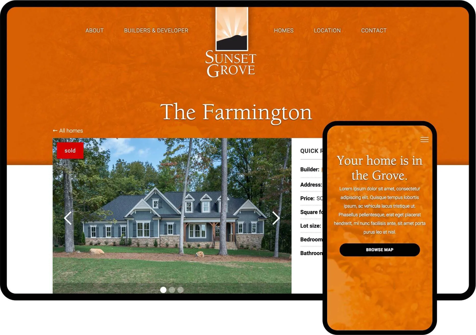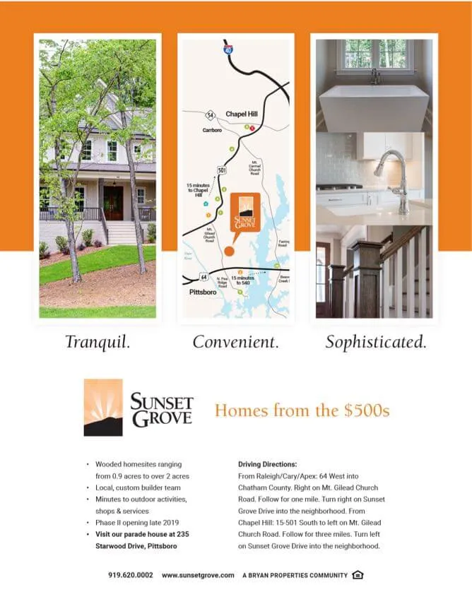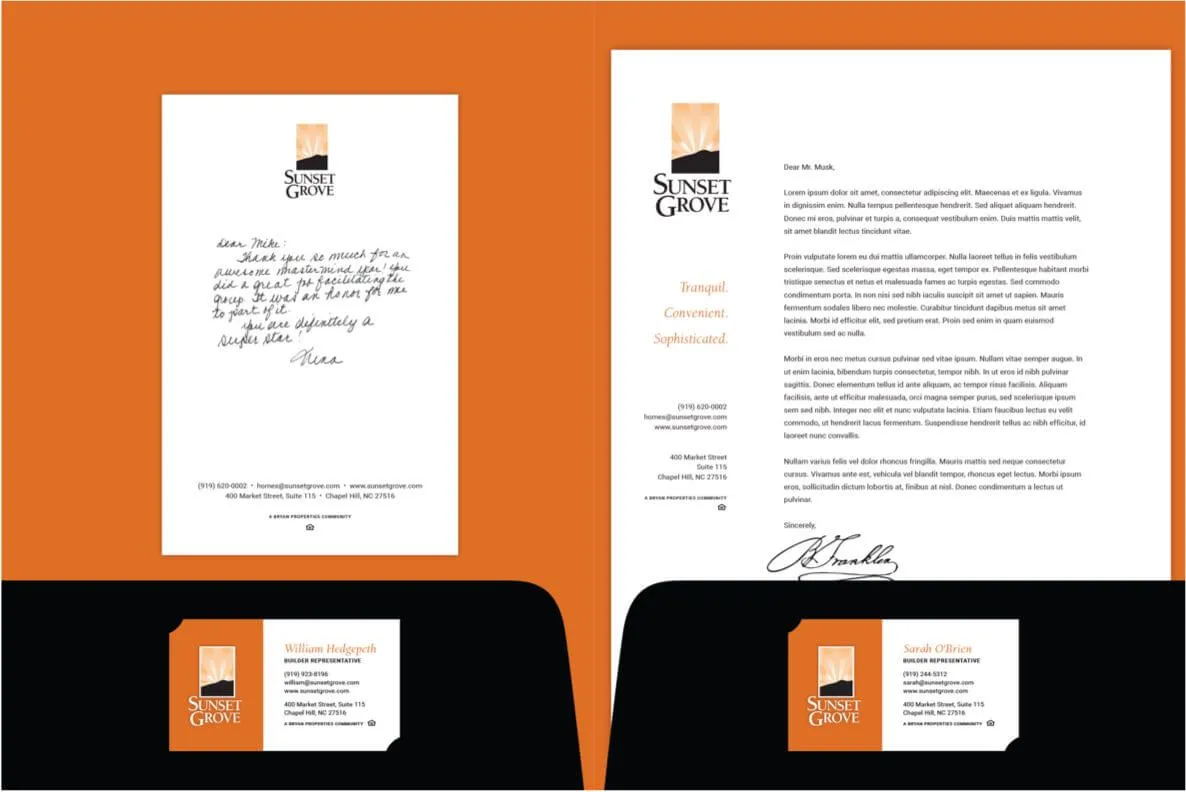 Sunset Grove crafts luxurious homes that have a down-home feel, so I crafted an upscale and welcoming website that is representative of their brand. I then refreshed their logo and collateral pieces to build brand trust.